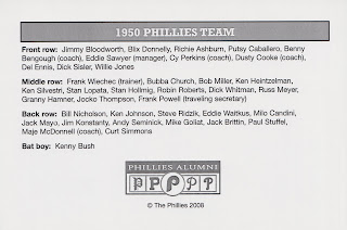 How Distributed: Between 2007 and 2009, the Phillies created special alumni photo cards for returning players to sign at various autograph events, during alumni weekends and as part of any reunion-related public appearances. A team card for the 1950 National League Champion Whiz Kids was also created. Fellow collector Rick shared with me his list of these cards, which is where the information below comes from. He also notes the 2007 Tekulve card was created for an autograph signing with the ex-reliever that was ultimately cancelled due to inclement weather.